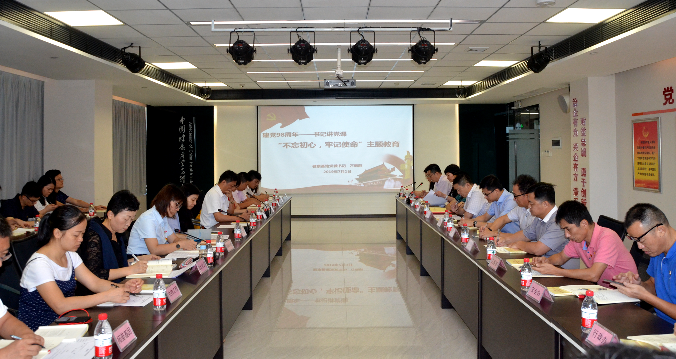 本次黨課由健康基地黨委萬鶴群書記主講,主要圍繞“不忘初心,牢記使命”主題教育的要求意義、建黨98周年大事記、大灣區(qū)機遇下健康產(chǎn)業(yè)的職責與使命以及產(chǎn)業(yè)發(fā)展規(guī)劃四方面展開。