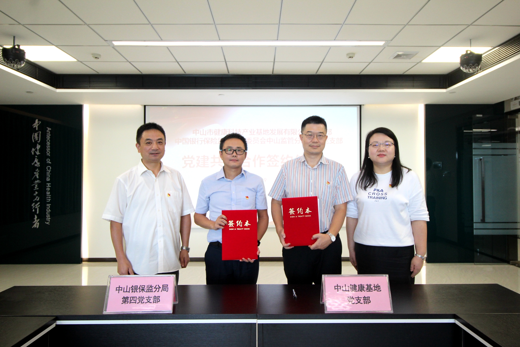調(diào)研交流之后,中山市健康科技產(chǎn)業(yè)基地發(fā)展有限公司黨支部和中國(guó)銀行保險(xiǎn)監(jiān)督管理委員會(huì)中山監(jiān)管分局第四黨支部共同簽訂黨建共建備忘錄。本次簽約是繼2019年4月與中國(guó)建設(shè)銀行中山分行黨委共同簽訂黨建共建備忘錄后的又一重要合作成果,標(biāo)志著健康基地高度重視資本對(duì)產(chǎn)業(yè)的助推作用,并與中山銀行業(yè)、保險(xiǎn)業(yè)及其監(jiān)管部門保持緊密合作,資源共享,優(yōu)勢(shì)互補(bǔ),共同推進(jìn)黨建工作質(zhì)量邁上新臺(tái)階,為健康醫(yī)藥產(chǎn)業(yè)發(fā)展保駕護(hù)航。