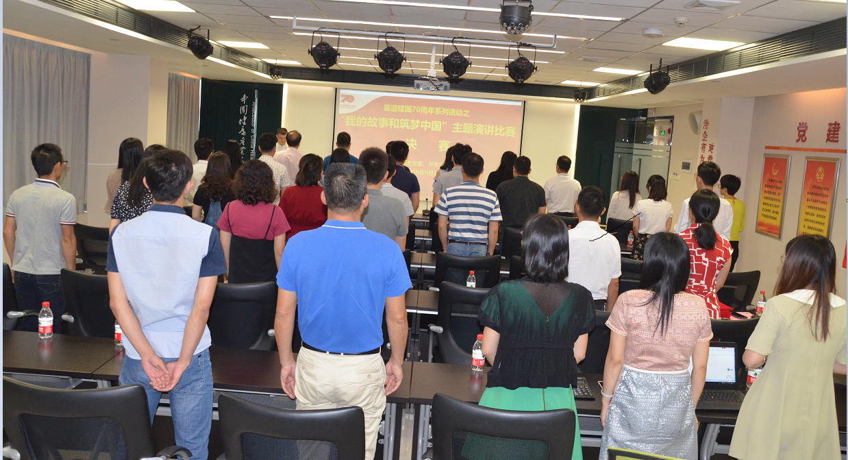 ▲全員起立及合唱國歌 此次演講比賽由國家健康基地黨委、開發(fā)區(qū)團工委主辦,健康基地工聯(lián)會、健康基地兩新黨支部及健康基地團委協(xié)辦,是健康基地“喜迎建國70周年”系列活動之一。在8月29日舉辦的初賽中,來自園區(qū)10個企業(yè)的21名選手最終有12名進入決賽。