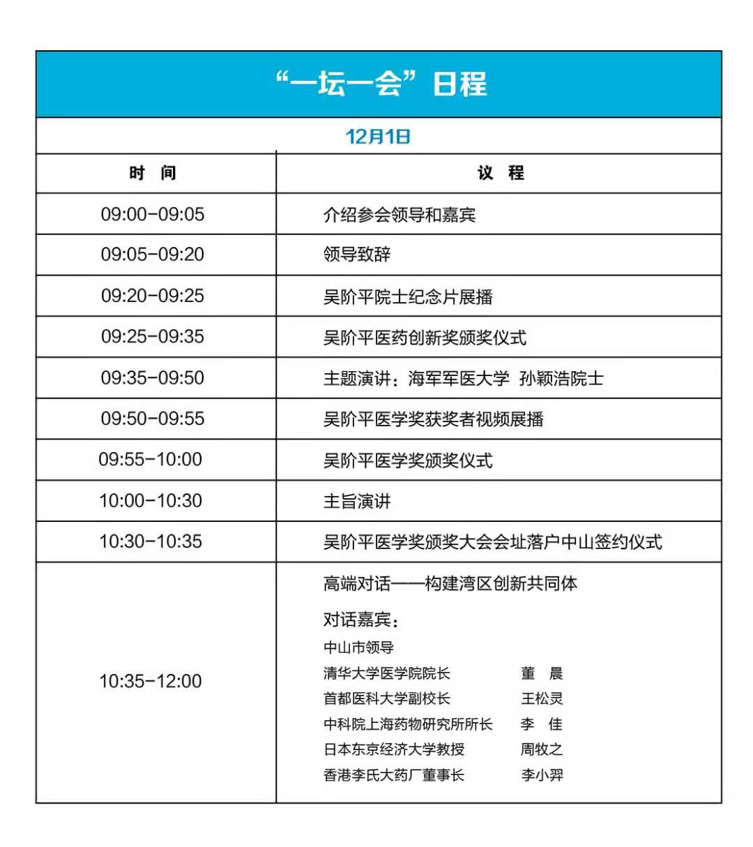 在開幕式上,將舉行中山市人民政府和吳階平醫(yī)學(xué)基金會(huì)《建設(shè)吳階平醫(yī)學(xué)獎(jiǎng)?lì)C獎(jiǎng)大會(huì)會(huì)址合作協(xié)議》簽約儀式,這標(biāo)志著吳階平醫(yī)學(xué)獎(jiǎng)?lì)C獎(jiǎng)大會(huì)會(huì)址將落戶中山。同時(shí),還將舉行院士主旨演講、高端對(duì)話。高端對(duì)話將圍繞“構(gòu)建國(guó)際化創(chuàng)新型健康灣區(qū)的機(jī)遇、挑戰(zhàn)”、“雙區(qū)驅(qū)動(dòng)戰(zhàn)略下,中山建設(shè)生物醫(yī)藥科技國(guó)際合作創(chuàng)新區(qū)的舉措”、“中山大力發(fā)展健康產(chǎn)業(yè)、融入灣區(qū)協(xié)同創(chuàng)新共同體路徑”等話題展開。