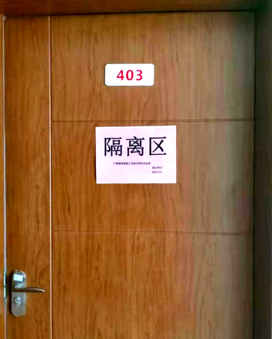 目前,可可康公司實(shí)行封密式管理,進(jìn)入廠區(qū)人員需有通行證,一人一證。 宿舍設(shè)置了整層樓作為隔離區(qū),隔離區(qū)有20間,隔離區(qū)配備齊全了生活所需的物品,并有專人管理及送餐等。