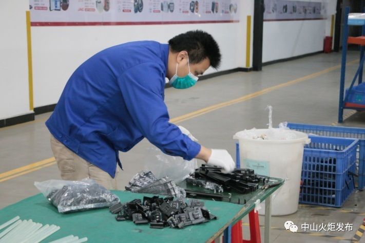 2月17日,在健康基地園區(qū)企業(yè)——廣東英得爾實(shí)業(yè)發(fā)展有限公司的車間里,機(jī)器的轟鳴聲再次響起,70名工人戴著口罩,熱火朝天地開足馬力生產(chǎn)設(shè)備。氣泵聲、電鉆聲、馬達(dá)聲等交織在一起,組成了一曲華麗的機(jī)器交響樂(lè)。