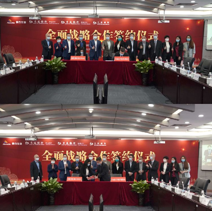 康方生物聯(lián)合創(chuàng)始人、董事、高級副總裁李百勇、王忠民,聯(lián)合創(chuàng)始人、副總裁張鵬,首席財務(wù)官席曉捷,交通銀行中山分行黨委書記、行長周土勝,黨委委員、副行長曹娟,交銀國際副首席執(zhí)行官蘇奮,交銀國際(亞洲)公司總經(jīng)理李宏麗,交通銀行香港分行一帶一路與大灣區(qū)部總經(jīng)理林永強,副總經(jīng)理陳智樂等分別參加在中山和香港的簽約儀式。