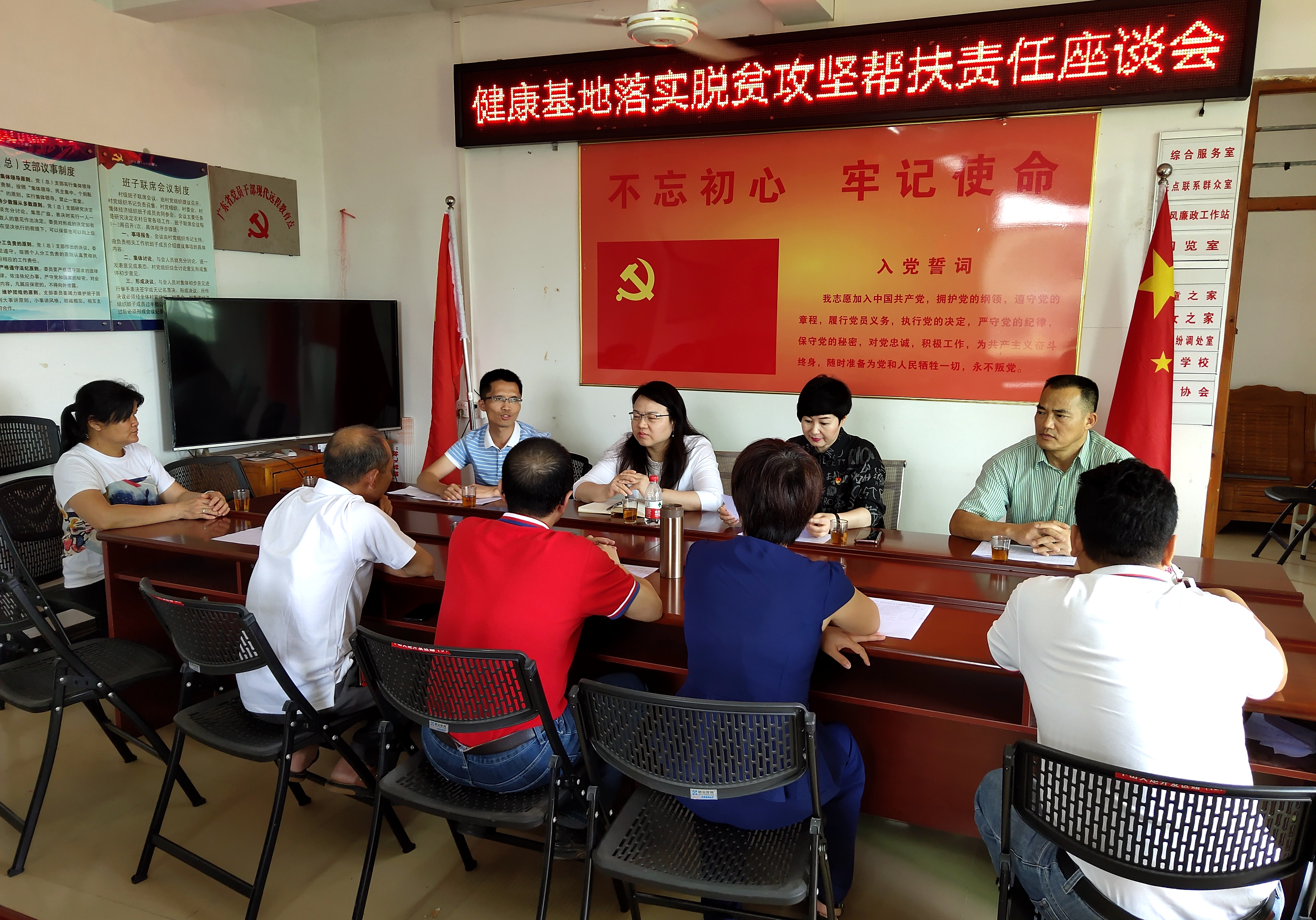 在團結(jié)村,健康基地黨委首先召開了落實攻堅幫扶責(zé)任座談會,與駐村工作隊、鎮(zhèn)掛村領(lǐng)導(dǎo)和村兩委干部深入交流,調(diào)研脫貧攻堅工作的進展和困難。