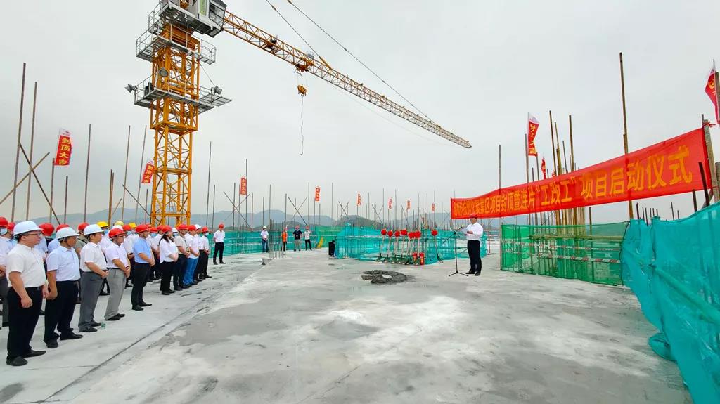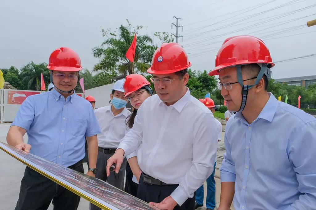 陳文鋒、林諾君、鐘劍、余建華、萬鶴群等為項目封頂澆筑混凝土