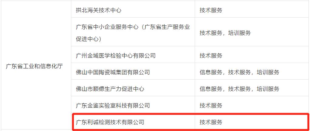 《2020年度國(guó)家中小企業(yè)公共服務(wù)示范平臺(tái)名單》中顯示,此次廣東省(未含深圳)有拱北海關(guān)技術(shù)中心、廣東省中小企業(yè)服務(wù)中心(廣東省生產(chǎn)服務(wù)業(yè)促進(jìn)中心)、廣東利誠(chéng)檢測(cè)技術(shù)有限公司等7家上榜。廣東利誠(chéng)檢測(cè)技術(shù)有限公司是中山市此次唯一一家上榜的企業(yè)。