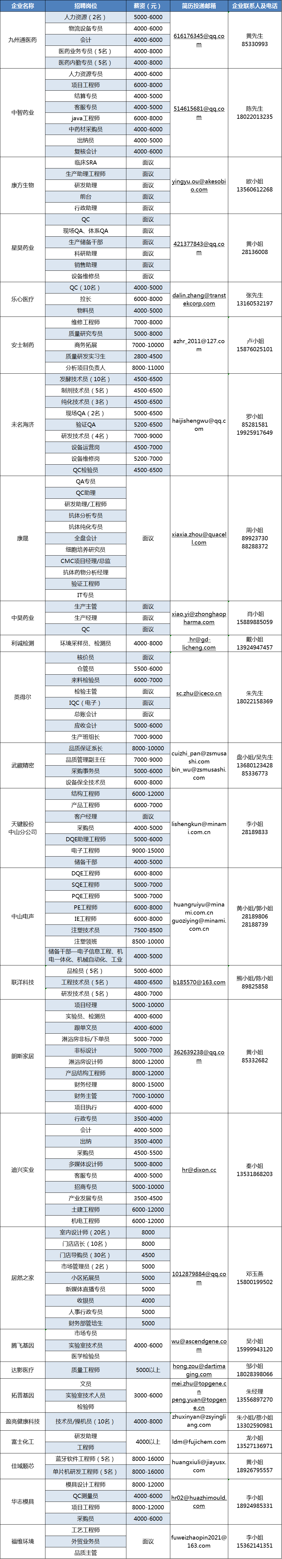 感興趣的話,請投簡歷到上述崗位對應(yīng)郵箱,各企業(yè)人力資源人員會與您聯(lián)系。
