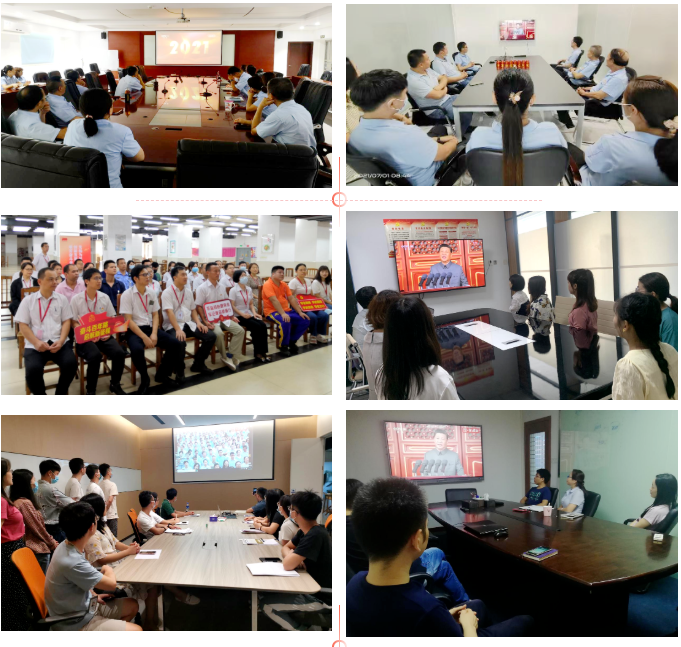 健康基地集團(tuán)園區(qū)黨委組織全體班子及黨員集中收看慶祝大會直播,感受這激動人心的歷史時刻,全神貫注聆聽習(xí)近平總書記重要講話。園區(qū)兩新黨支部同步組織黨員一同觀看直播。