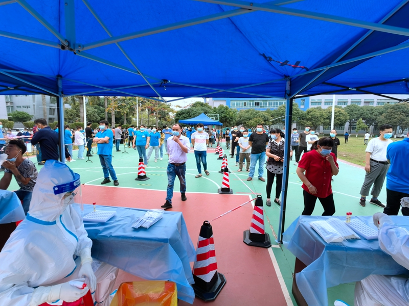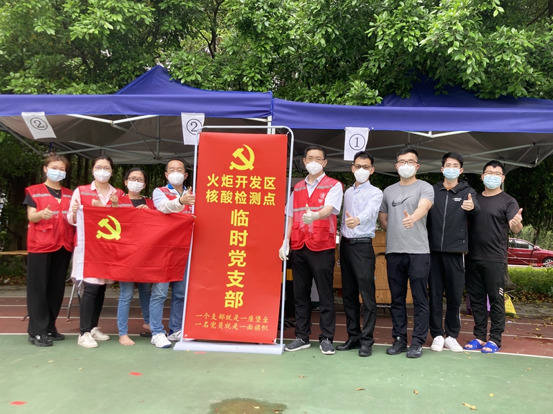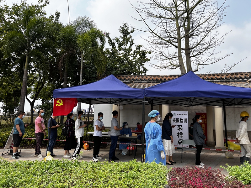 健康基地園區(qū)黨委和經(jīng)營班子帶領(lǐng)全體黨員、員工組成10支先鋒隊(duì),奔赴健康基地園區(qū)工聯(lián)黨群服務(wù)中心、裕興工業(yè)園區(qū)、天鍵公司、武藏公司、濱江公園、標(biāo)志廣場、健康智慧小鎮(zhèn)、美味鮮公司、美捷時(shí)公司、樂心公司10個(gè)核酸檢測點(diǎn),配合醫(yī)務(wù)工作者積極奮戰(zhàn)。其中有7個(gè)點(diǎn)在臨時(shí)交通管制區(qū),黨員不畏艱險(xiǎn),按照“快、嚴(yán)、實(shí)”的工作要求,保障核酸檢測工作的有條不紊。在疫情防控工作中,黨員同志們牢記初心使命,勇于擔(dān)當(dāng)作為,冒著烈日和春雨,積極投身疫情防控最前沿,全力奮戰(zhàn)在急難險(xiǎn)重攻堅(jiān)任務(wù)第一線,切實(shí)發(fā)揮了黨員先鋒模范帶頭作用。