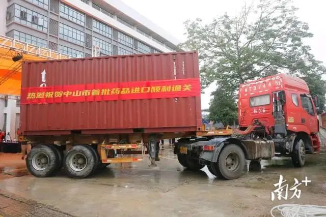 5月16日上午,在中山火炬開發(fā)區(qū)的中山港中外運(yùn)碼頭,紅色貨運(yùn)卡車緩緩開入會場,首批進(jìn)口藥品頭孢噻肟鈉和小兒珠珀散順利在“家門口”通關(guān),標(biāo)志著中山市藥品進(jìn)口口岸正式啟用。