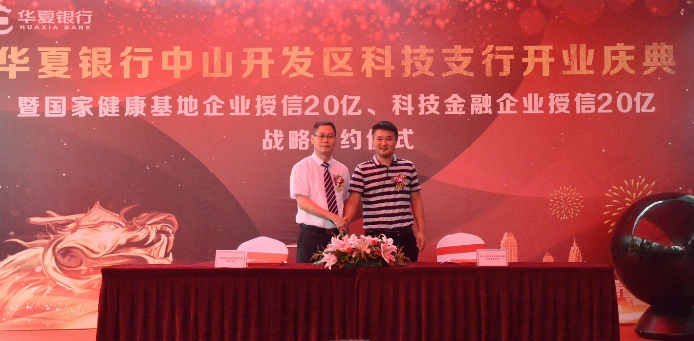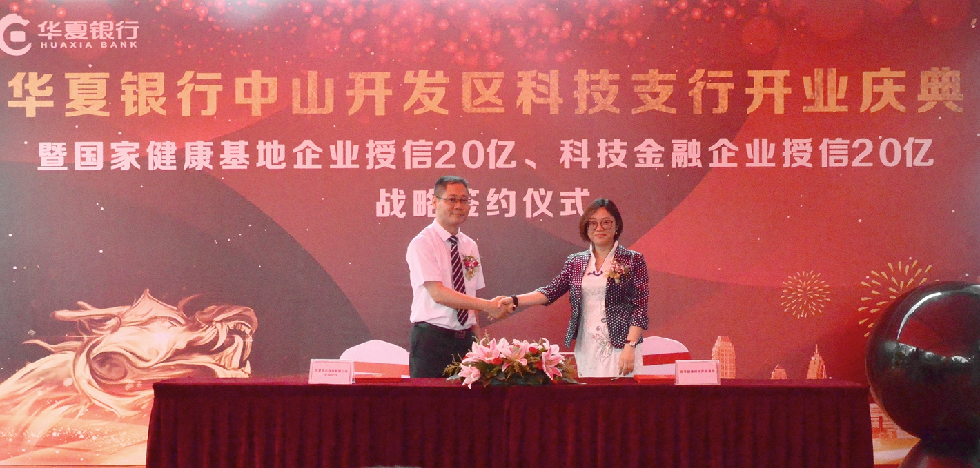 開業(yè)慶典現(xiàn)場,國家健康基地與華夏銀行中山分行簽訂了戰(zhàn)略合作協(xié)議,健康基地園區(qū)企業(yè)獲得華夏銀行中山分行20億元的授信額度。在金融產(chǎn)品創(chuàng)新方面,華夏銀行中山分行將以“以貸促投,以投引貸”為導(dǎo)向,創(chuàng)新發(fā)展投貸聯(lián)動(dòng)、投債聯(lián)動(dòng)、投保聯(lián)動(dòng)、風(fēng)險(xiǎn)準(zhǔn)備金擔(dān)保貸款等新模式,協(xié)助健康基地建設(shè)多層次的投融資體系。