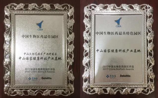 4月11日,2017中國(guó)生物醫(yī)藥最佳園區(qū)第三屆評(píng)選榜單發(fā)布,中山國(guó)家健康基地榮獲全國(guó)十佳生物醫(yī)藥園區(qū)(綜合獎(jiǎng))及全國(guó)最具特色園區(qū)(單項(xiàng)獎(jiǎng))兩個(gè)獎(jiǎng)項(xiàng)。這是國(guó)家健康基地第二次榮獲全國(guó)十佳生物醫(yī)藥園區(qū)獎(jiǎng)項(xiàng)。 “2017中國(guó)生物醫(yī)藥園區(qū)- CBIA China Excellence Bio Park” 評(píng)選活動(dòng)是由中國(guó)國(guó)際投資促進(jìn)中心及生物醫(yī)藥媒體生物谷發(fā)起組成“CBIA中國(guó)生物醫(yī)藥園區(qū)評(píng)選理事會(huì)”,攜手國(guó)內(nèi)外知名第三方監(jiān)管及服務(wù)機(jī)構(gòu)--德勤中國(guó)共同推進(jìn)和評(píng)選的。
