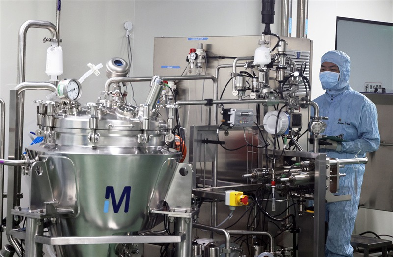 4月18日,記者來到位于火炬開發(fā)區(qū)健康基地的康方生物進行實地采訪。進入康方生物研發(fā)生產(chǎn)車間走廊,透過嚴實的玻璃窗可以看到,一臺臺精密的儀器正在工作著,規(guī)律晃動的培養(yǎng)液、鮮有工作人員的生產(chǎn)線……無不昭示著這是先進的數(shù)字化智能生產(chǎn)車間。