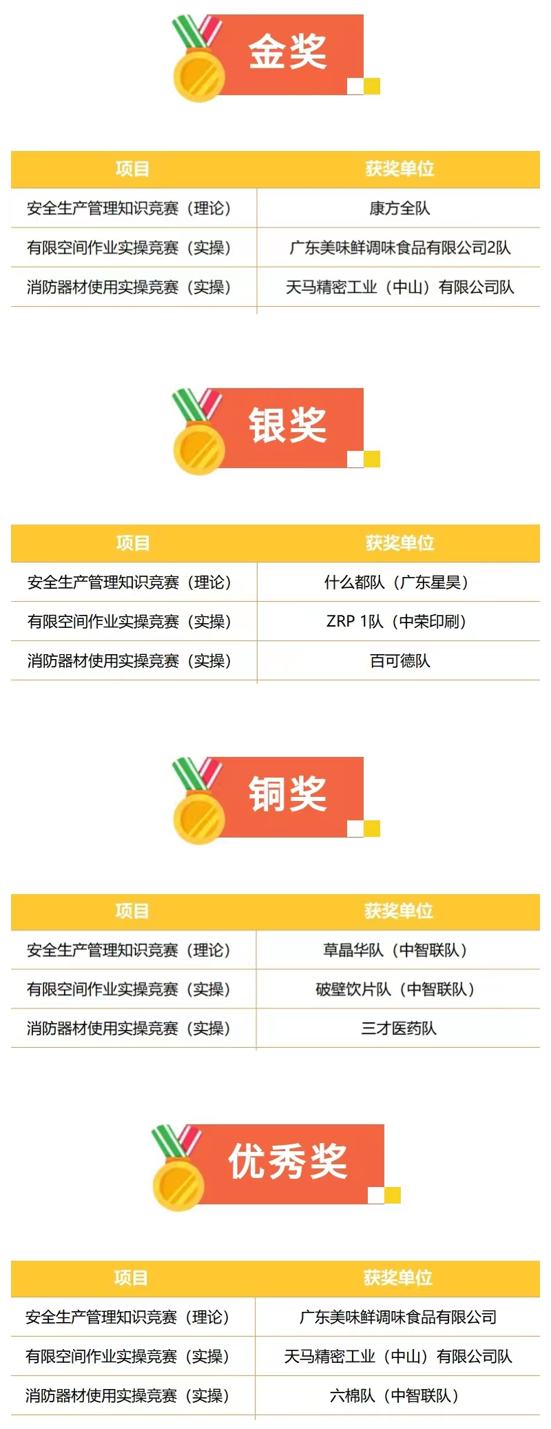 經(jīng)過(guò)一天的激烈角逐,三個(gè)賽項(xiàng)分別評(píng)選出金獎(jiǎng)、銀獎(jiǎng)、銅獎(jiǎng)、優(yōu)秀獎(jiǎng)各3隊(duì):
