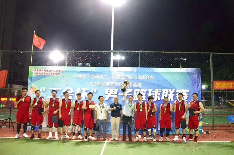 本次賽事圍繞火炬開發(fā)區(qū)黨建引領(lǐng)“新連心”推動高質(zhì)量發(fā)展系列活動計劃開展,共吸引基地園區(qū)10支隊伍報名近150名運動員參賽,得到了區(qū)總工會、區(qū)黨建辦、集團(tuán)園區(qū)黨委及園區(qū)企業(yè)的大力支持。經(jīng)過半個多月的精彩角逐,7月5日晚,在中山市美捷時包裝制品有限公司燈光球場圓滿落幕!