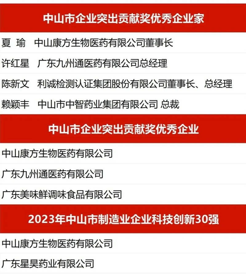 健康基地園區(qū)4位企業(yè)家獲評“中山市企業(yè)突出貢獻(xiàn)獎優(yōu)秀企業(yè)家 ”、3家企業(yè)榮獲“中山市企業(yè)突出貢獻(xiàn)獎優(yōu)秀企業(yè)”、2家企業(yè)入選“2023 年中山市制造業(yè)企業(yè)科技創(chuàng)新30強(qiáng)”。