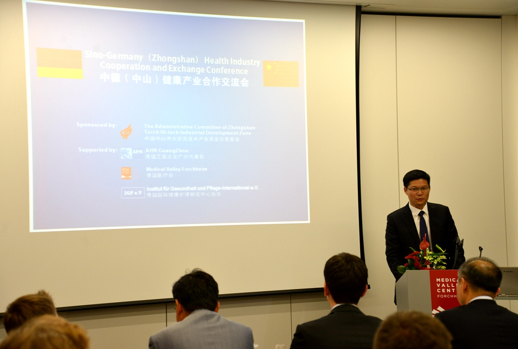 德國(guó)當(dāng)?shù)貢r(shí)間9月21日晚,由市委常委、火炬開發(fā)區(qū)黨工委書記、翠亨新區(qū)黨工委書記侯奕斌率領(lǐng)的中山市經(jīng)貿(mào)代表團(tuán)(下稱:經(jīng)貿(mào)團(tuán))在德國(guó)紐倫堡大區(qū)Forchheim市組織召開了中德健康產(chǎn)業(yè)合作推介會(huì)。此次合作交流會(huì)由中山火炬開發(fā)區(qū)主辦,得到德國(guó)工商大會(huì)廣州代表處、德國(guó)醫(yī)療谷、德國(guó)國(guó)際健康護(hù)理研究中心協(xié)會(huì)的大力支持。