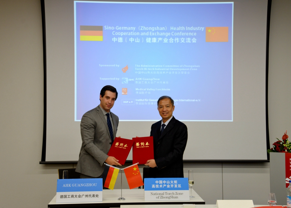 最后,侯奕斌常委與德國(guó)工商大會(huì)大中華區(qū)協(xié)調(diào)總監(jiān)Urban簽署了合作備忘錄,中山火炬開發(fā)區(qū)將與德國(guó)工商大會(huì)廣州代表處合作開展德國(guó)健康產(chǎn)業(yè)調(diào)研、線上線下推介、項(xiàng)目對(duì)接等合作。德國(guó)工商大會(huì)廣州代表處將協(xié)調(diào)合適的德國(guó)生物醫(yī)藥企業(yè)與中山對(duì)接,組織相關(guān)機(jī)構(gòu)到中山考察,協(xié)助中山市在德國(guó)及歐洲進(jìn)行推介、宣傳和項(xiàng)目洽談,并協(xié)助中山市與德國(guó)使領(lǐng)館、商協(xié)會(huì)、咨詢服務(wù)機(jī)構(gòu)進(jìn)行聯(lián)系,拓寬中山對(duì)德合作渠道。同時(shí),雙方將建立協(xié)調(diào)聯(lián)絡(luò)機(jī)制,加強(qiáng)日常溝通和聯(lián)系,為中德(中山)生物醫(yī)藥產(chǎn)業(yè)園的發(fā)展輸送高質(zhì)量項(xiàng)目,并促成包括科研、資本、品牌推廣等方面的合作。