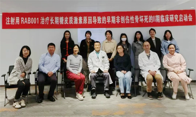 本次開展的II期試驗為評價注射用RAB001治療長期糖皮質(zhì)激素原因?qū)е碌脑缙诜莿?chuàng)傷性骨壞死患者的有效性、安全性、耐受性及PK/PD關(guān)系的多中心、隨機、對照、盲態(tài)的Ⅱ期臨床試驗。入組對象為長期使用糖皮質(zhì)激素導(dǎo)致的股骨頭壞死的患者,預(yù)計入組160例受試者。RAB001的Ⅱ期臨床期試驗由上海市第六人民醫(yī)院張長青教授(國家骨科研究中心主任)和北京大學(xué)人民醫(yī)院(臨床免疫中心)粟占國教授共同牽頭,由四川大學(xué)華西醫(yī)院、北京大學(xué)第三醫(yī)院、北京積水潭醫(yī)院、中南大學(xué)湘雅二醫(yī)院、蘇州大學(xué)附屬第一醫(yī)院、廣州中醫(yī)藥大學(xué)第三附屬醫(yī)院等20多家全國知名醫(yī)院共同參與。