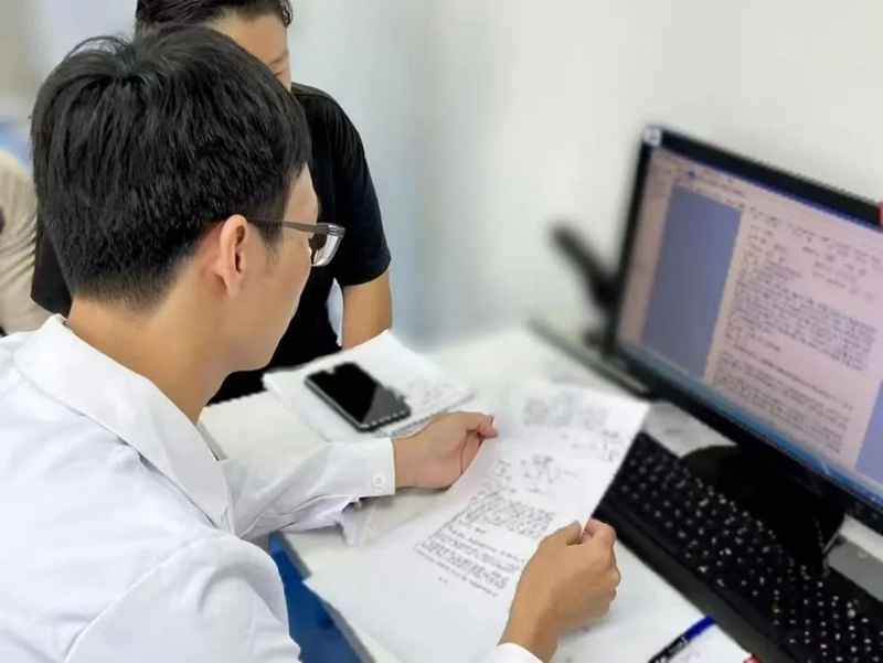 圖:中山大學(xué)附屬腫瘤醫(yī)院副主任醫(yī)師洪少東正在為患者開處方