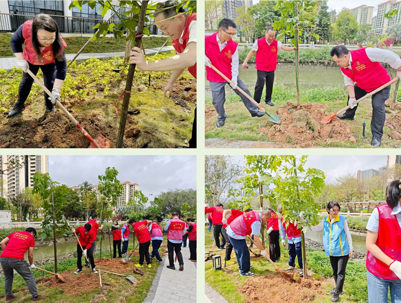 增綠就是增優(yōu)勢,植樹就是植未來。健康基地集團(tuán)積極響應(yīng)綠美火炬生態(tài)建設(shè),堅(jiān)決把綠美生態(tài)建設(shè)作為推進(jìn)“百千萬工程”的重要抓手。過去一年,健康基地集團(tuán)堅(jiān)持黨建引領(lǐng),以主題黨日活動(dòng)為載體,在園區(qū)“見縫插綠”種植各類苗木共計(jì)331株,開展綠美公益募捐籌集捐款及相關(guān)物資達(dá)21.6萬元,打造了英得爾、國安火炬、咀香園、金馬游樂、武藏精密等一批綠美廠企示范點(diǎn)。在今年2月初,集團(tuán)園區(qū)黨委組織開展2025年新春植樹活動(dòng),在園區(qū)栽植50株秋楓,讓空閑地變綠地,實(shí)現(xiàn)綠美生態(tài)建設(shè)與園區(qū)環(huán)境提檔升級協(xié)同推進(jìn)。