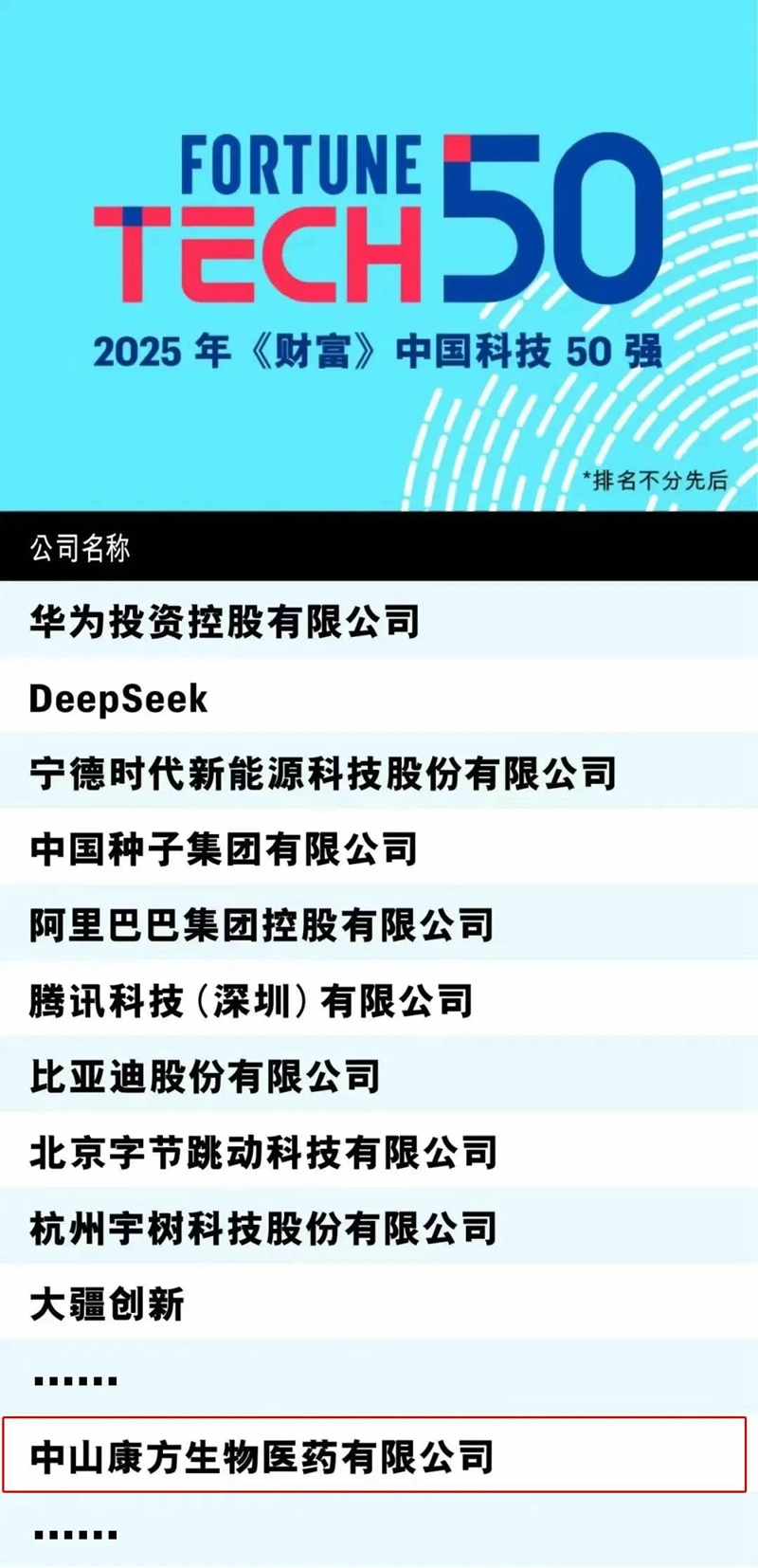 8月21日,國際權(quán)威商業(yè)雜志《財(cái)富》(Fortune)正式公布“2025年《財(cái)富》中國科技50強(qiáng)”榜單結(jié)果,健康基地園區(qū)企業(yè)康方生物憑借卓越的創(chuàng)新能力與突破性研發(fā)成果,成功入選 “中國科技50強(qiáng)”榜單。