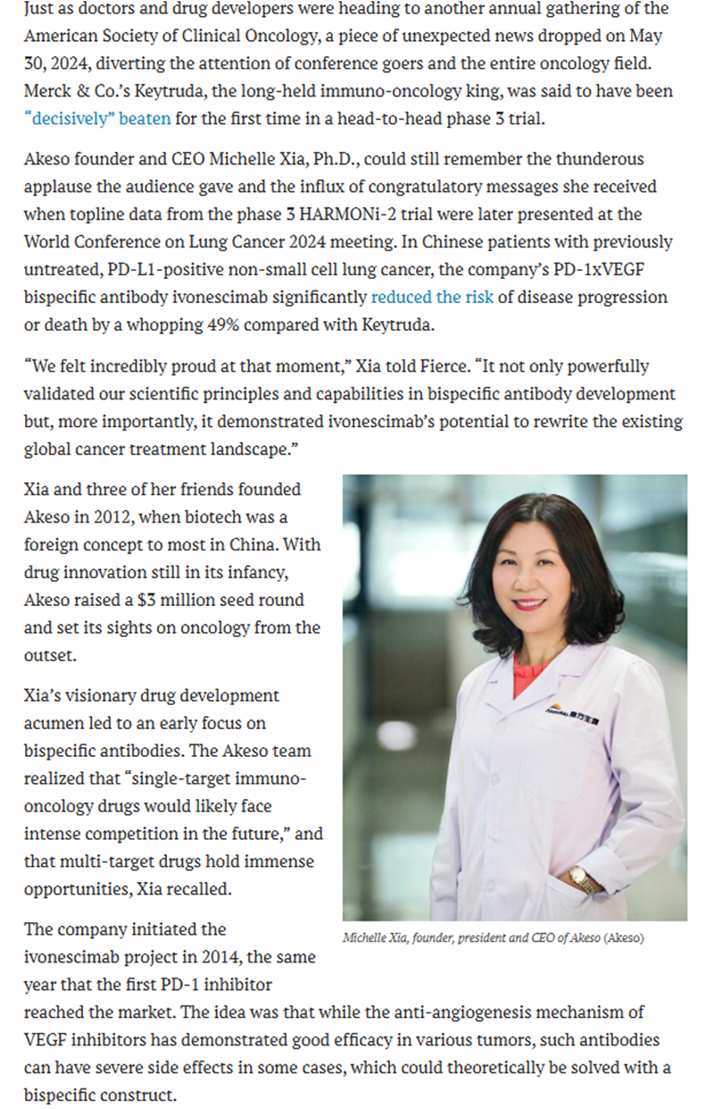 Fiercepharma對(duì)康方生物的獲獎(jiǎng)報(bào)道
