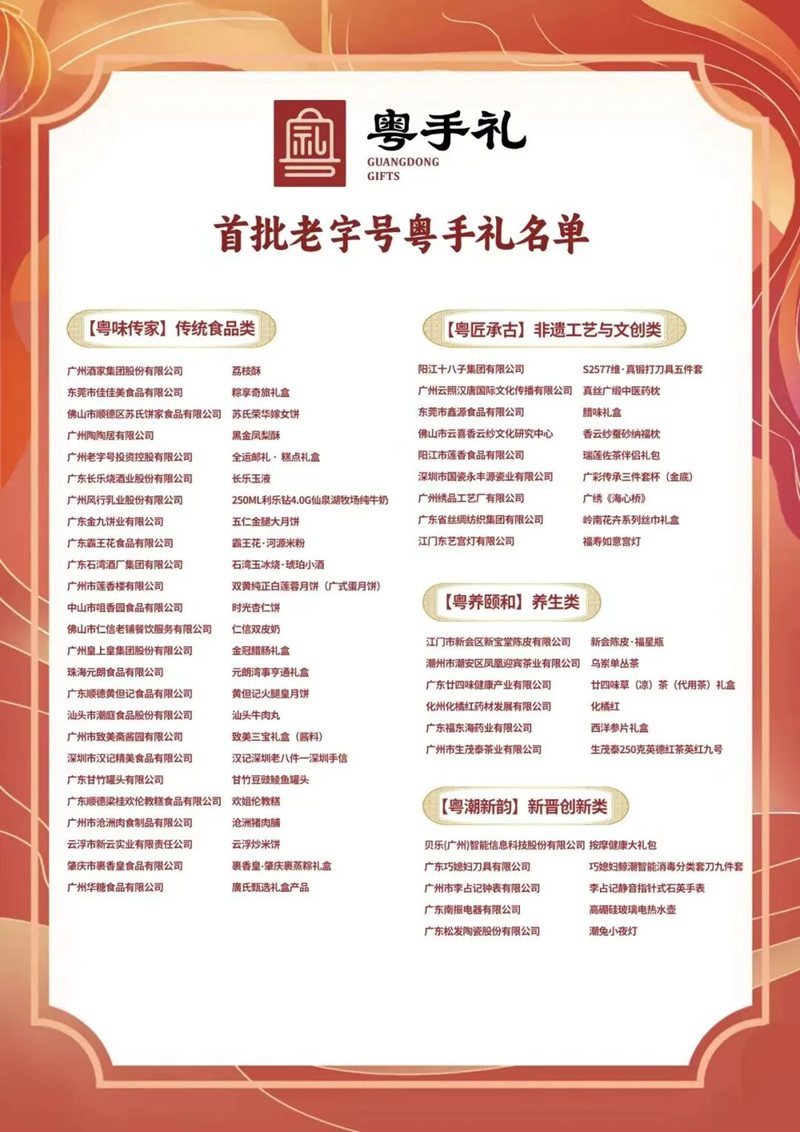 今年8月,為落實《廣東省促進老字號創(chuàng)新發(fā)展行動方案(2022-2025)》要求,促進廣東老字號企業(yè)推出更多具有地域特色、文化內(nèi)涵、時代特點的“必購必帶”產(chǎn)品,賦能老字號消費,推動老字號品牌升級,助力“粵品出粵”,提升“粵手禮”產(chǎn)品的市場競爭力和品牌影響力,在廣東省商務廳、廣東省文化和旅游廳的指導下,廣東省老字號協(xié)會對“粵手禮”進行產(chǎn)品征集、資格初審、專家評審、綜合考評等多個環(huán)節(jié)的層層篩選。涵蓋“粵味傳家”傳統(tǒng)食品類、“粵匠承古”非遺工藝與文創(chuàng)類、“粵養(yǎng)頤和”養(yǎng)生產(chǎn)品類、“粵潮新韻”新晉創(chuàng)新品類等,共計四大品類45件產(chǎn)品入圍。