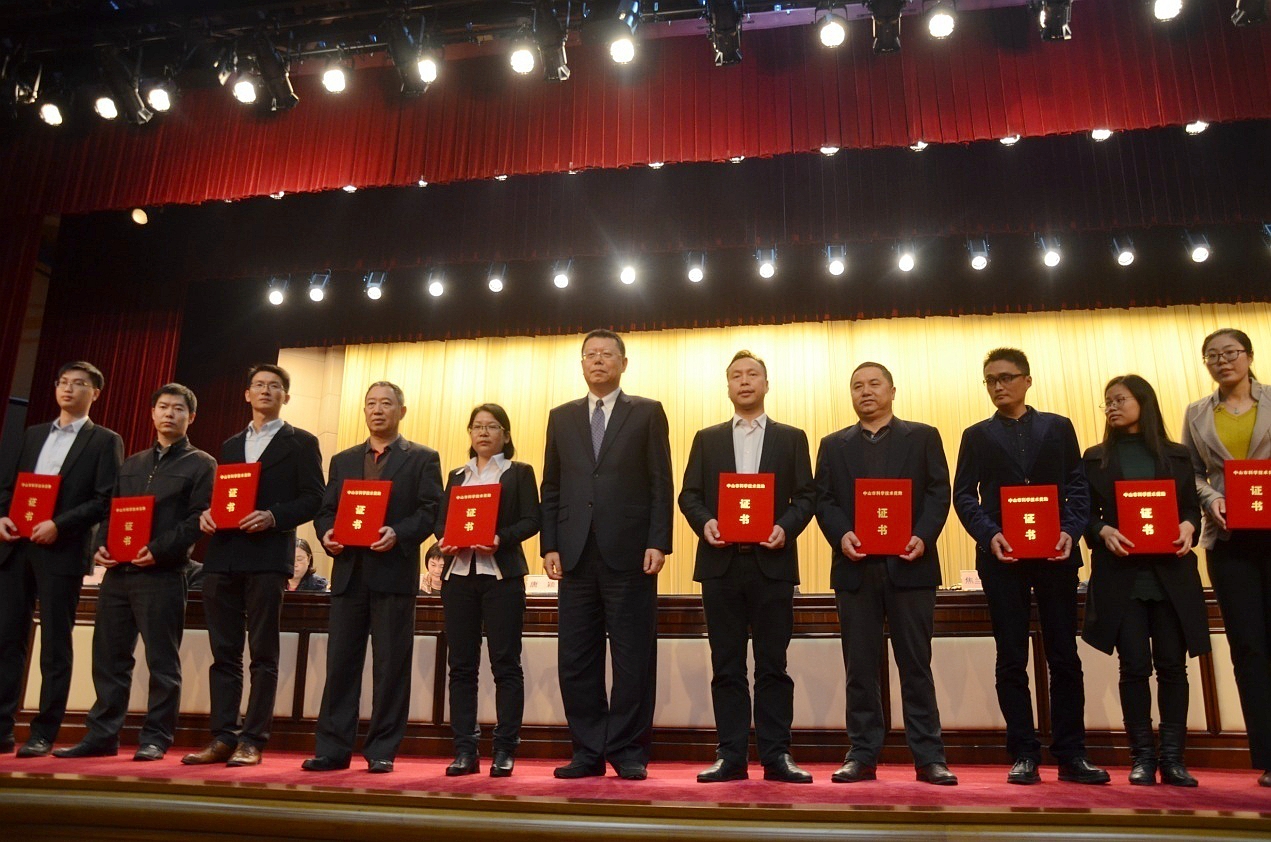 焦蘭生市長為“中山市科學(xué)技術(shù)進步獎一等獎”獲獎單位頒獎