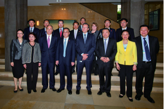 2013年7月,廣東省委書記胡春華帶隊(duì)訪問山德士制藥母公司-瑞士諾華公司總部。