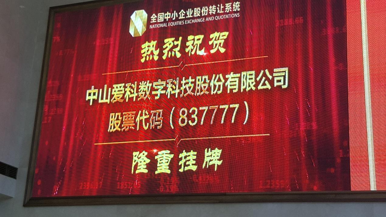 7月28日,中山愛科數(shù)字科技股份有限公司(股票簡稱“中山愛科”,證券代碼“837777”)新三板掛牌敲鐘儀式在北京舉行,中山市科技局局長尹明、市科協(xié)主席余元龍、火炬開發(fā)區(qū)總經(jīng)濟(jì)師梁兆華、國家健康科技產(chǎn)業(yè)基地總經(jīng)理方迎以及愛科公司董事長盧后南、董事兼總經(jīng)理盧林發(fā)等出席掛牌儀式。