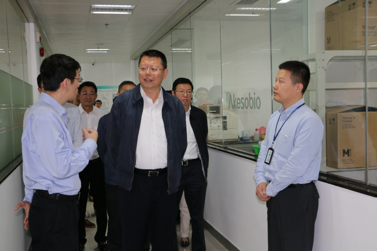 4月18日上午,中山市委副書記、代市長焦蘭生在中山市委常委、常務(wù)副市長謝中凡、市委常委、火炬區(qū)黨工委書記、翠亨新區(qū)黨工委書記侯奕斌的陪同下,到國家健康基地園區(qū)企業(yè)中山康方生物醫(yī)藥有限公司調(diào)研。
