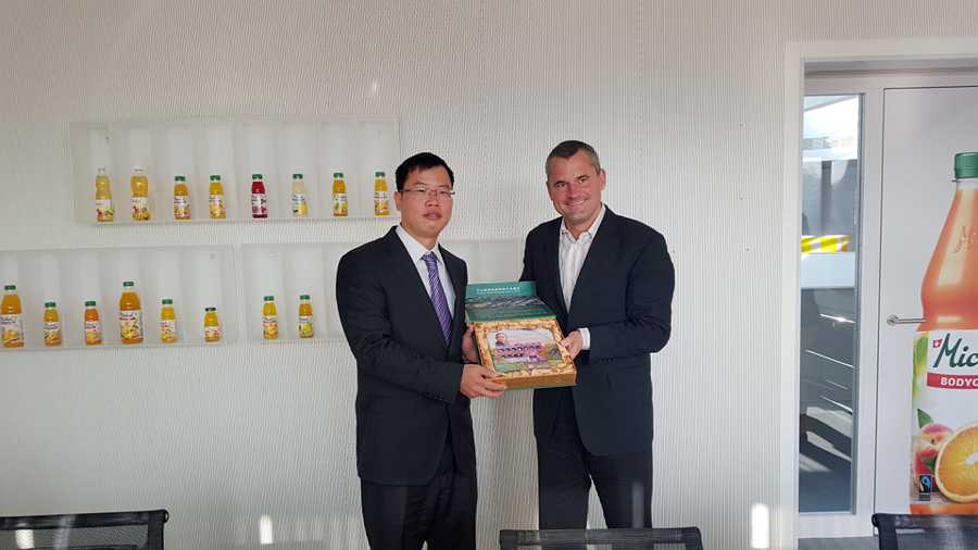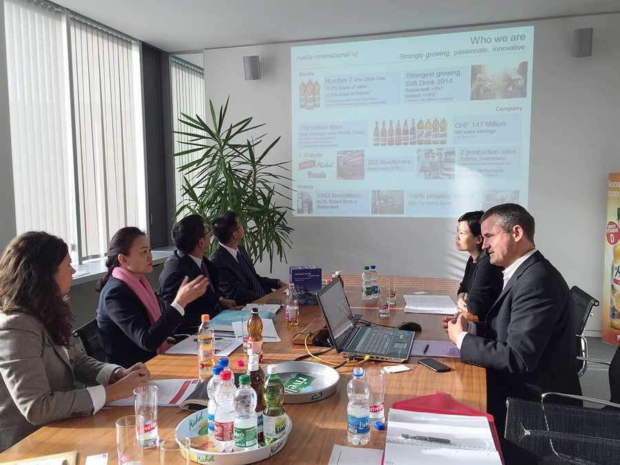瑞士當(dāng)?shù)貢r間10月20日上午,由中山市食品藥品監(jiān)督管理局副局長曾德強(qiáng)帶隊(duì),國家健康基地副總經(jīng)理林霞等中山經(jīng)貿(mào)代表團(tuán)一行參觀考察位于瑞士Rothrist的Rivella公司。