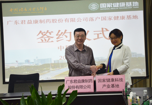 4月1日,國家健康基地總經(jīng)理方迎和廣東君益康制藥股份有限公司(下簡稱“君益康制藥”)董事長王君在國家健康基地會議室簽約,標(biāo)志著君益康制藥正式落戶國家健康基地。