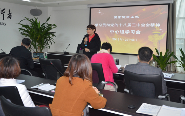 12月18日,國家健康基地召開十八屆三中全會中心組學習會議。健康基地全體黨員和部分員工參加了學習。會上,健康基地黨總支書記、總經理方迎進行了學習十八屆三中全會精神的動員講話,她要求全體黨員群眾都要充分領會十八屆三中全會精神,并將全會精神融入貫徹到日常工作中。