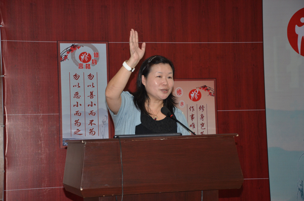 葉老師向女員工提出了美滿幸福六字訣:成功、健康、自在,并從構(gòu)建孩子幸福感的八種方法、了解并發(fā)揮孩子的優(yōu)勢(shì)方法、促進(jìn)孩子幸福的美德育成方法三方面介紹幸福孩子的培育方法。