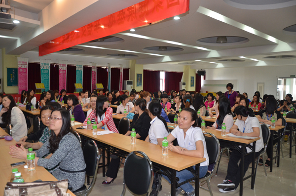 4月18日, “幸福女工”修身學(xué)堂走進(jìn)健康基地,美捷時(shí)、星昊、中智藥業(yè)等園區(qū)企業(yè)200多名女工在課堂上分享了生活中的幸福和困擾。廣東省社區(qū)教育專業(yè)委員會(huì)副秘書長(zhǎng)、百分媽媽研究所副主任葉文芳為女工解答了困惑,并介紹如何創(chuàng)造幸福婚姻、如何培養(yǎng)幸福孩子。