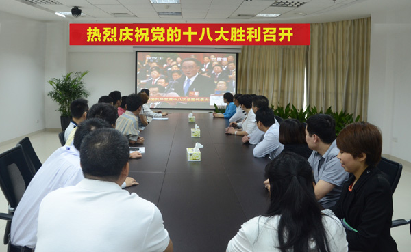 早上不到九點(diǎn),健康基地多功能會(huì)議室里座無(wú)虛席,總公司全體黨員干部和園區(qū)企業(yè)黨員代表近百人歡聚一堂,共同觀看了黨的十八大開(kāi)幕式。