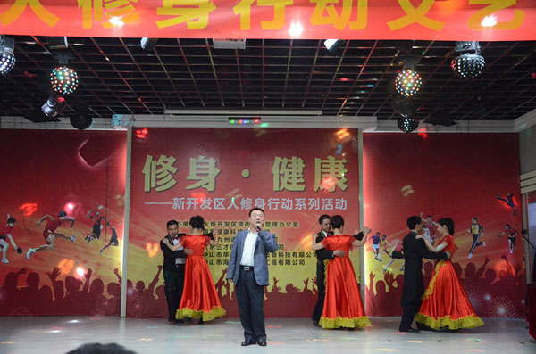 修身健康晚會節(jié)目內(nèi)容豐富、精彩紛呈。精彩的節(jié)目由國家健康基地園區(qū)企業(yè)九州通、三才醫(yī)藥、海濟(jì)醫(yī)藥、華志科技和火炬開發(fā)區(qū)藝術(shù)團(tuán)共同演繹,顯現(xiàn)了國家健康基地和新開發(fā)區(qū)人良好的精神風(fēng)貌,積極參與全民修身活動。會上,谷德慶主任向新開發(fā)區(qū)人提出了倡議;健康基地領(lǐng)導(dǎo)也向基地園區(qū)企業(yè)發(fā)出了積極投身修身行動的號召;開發(fā)區(qū)百佳代表宣讀了《人人修身 個個給力——新開發(fā)區(qū)人修身倡議書》。《倡議書》中,開發(fā)區(qū)流動人口管理辦公室向全區(qū)所有新開發(fā)區(qū)人發(fā)出倡議:從自身做起,從小事做起;做“四有”新開發(fā)區(qū)人;弘揚(yáng)社會正氣,引領(lǐng)文明風(fēng)尚。當(dāng)晚,代表新開發(fā)區(qū)人修身系列行動的修身健康、修身普惠、修身奉獻(xiàn)、修身低碳、修身共融共五個代表隊(duì)的人員上臺作了展示。晚會最后舉行了新開發(fā)區(qū)人修身系列行動的啟動儀式,由劉少山副書記宣布新開發(fā)區(qū)人修身系列行動正式啟動。拉開了新開發(fā)區(qū)人修身行動的序幕!
