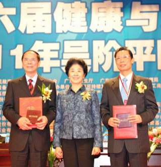 鍾南山(右)、韓濟(jì)生(左)獲得2011年吳階平醫(yī)學(xué)獎(jiǎng)。全國(guó)政協(xié)副主席、吳階平醫(yī)學(xué)獎(jiǎng)評(píng)委王志珍向兩位獲獎(jiǎng)?wù)哳C發(fā)獲獎(jiǎng)證書和獎(jiǎng)?wù)?/FONT>